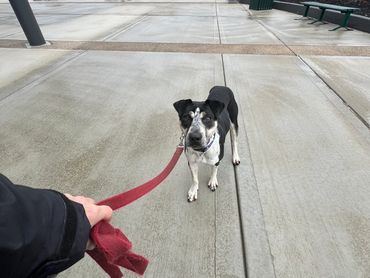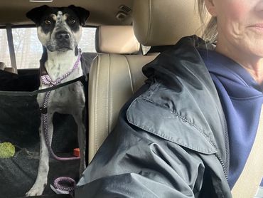 My husband and I took Emily for an outing at the park one Friday. She enjoyed time away from the stress and noise of the shelter. The following day I picked her up and took her to an adoption event at Petsmart. We walked in and immediately saw a gentleman looking for a playmate for his dog, Josephine. My friend, Tinah, had accompanied him on this endeavor. Mark decided to take Emily for a "home trial". A few days later he decided to adopt her. Emily is now Valerie. She enjoys hiking with her new family.